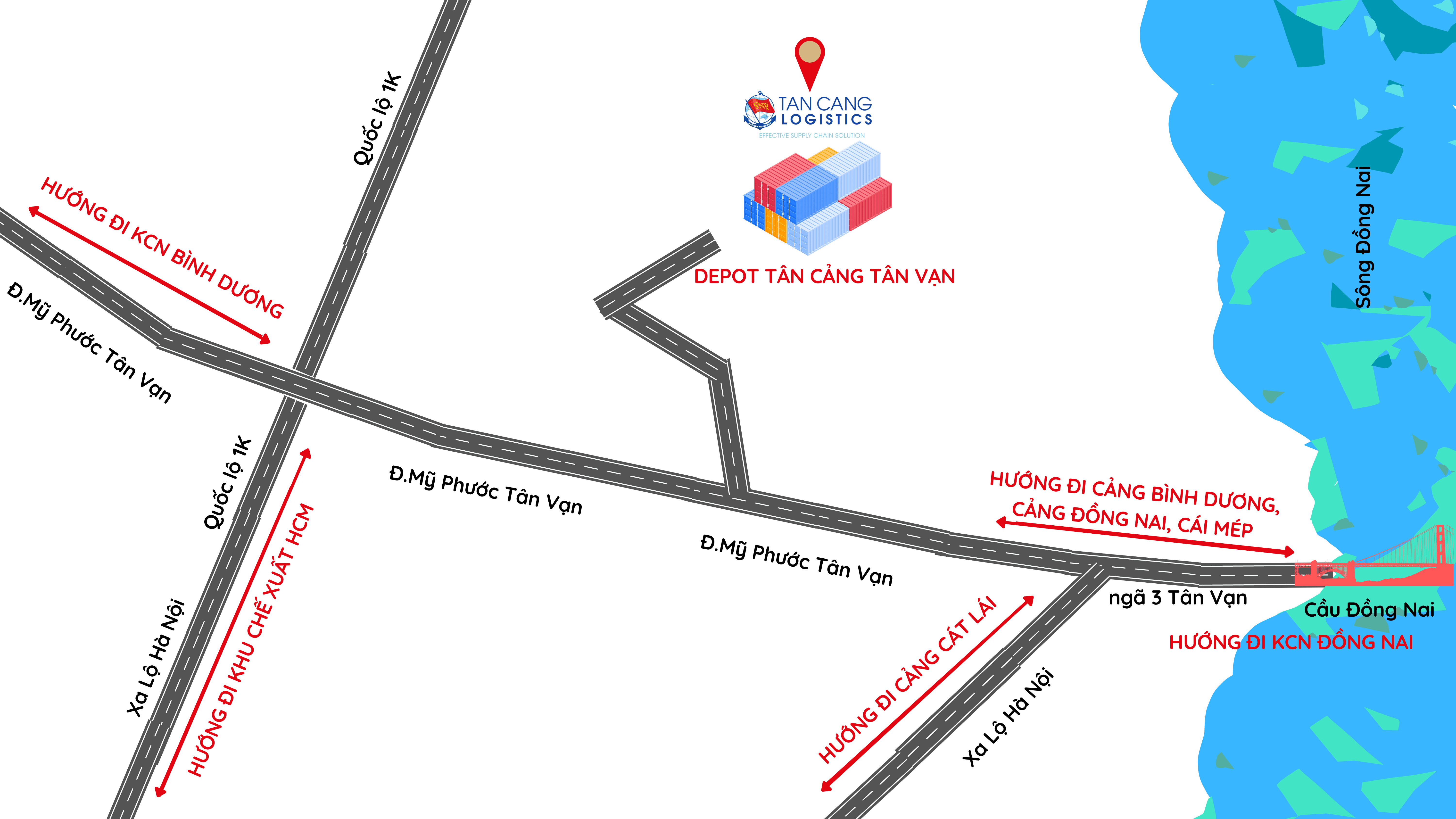 Nằm ở vị trí kết nối với 3 vùng trọng điểm Đông Nam bộ - TP.HCM – Bình Dương – Đồng Nai, vừa tạo bước thuận lợi cho sự phát triển của hệ thống Depot/ICD/Cảng khu vực sông Đồng Nai và góp phần phát triển vận tải đường bộ, thủy từ Bình Dương, Đồng Nai đi Bà Rịa – Vũng Tàu. Tiềm năng hơn, vị trí từ Depot Tân Cảng Tân Vạn đến nút giao thông ngã ba Tân Vạn, Cảng Bình Dương và Cảng Đồng Nai rất thuận lợi, hứa hẹn sẽ là điểm trung chuyển và giao nhận hàng hóa lý tưởng cho các khách hàng khu vực Bình Dương.