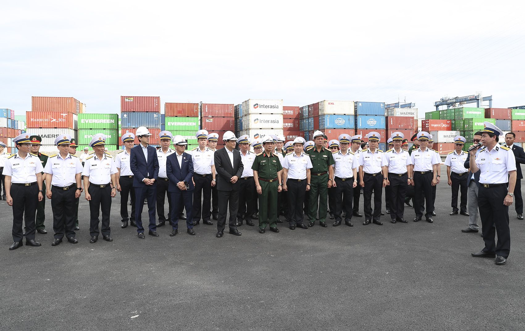 Delegates from Both Countries' Working Delegations Take a Commemorative Photo at Tan Cang Cat Lai Terminal's Conference Hall