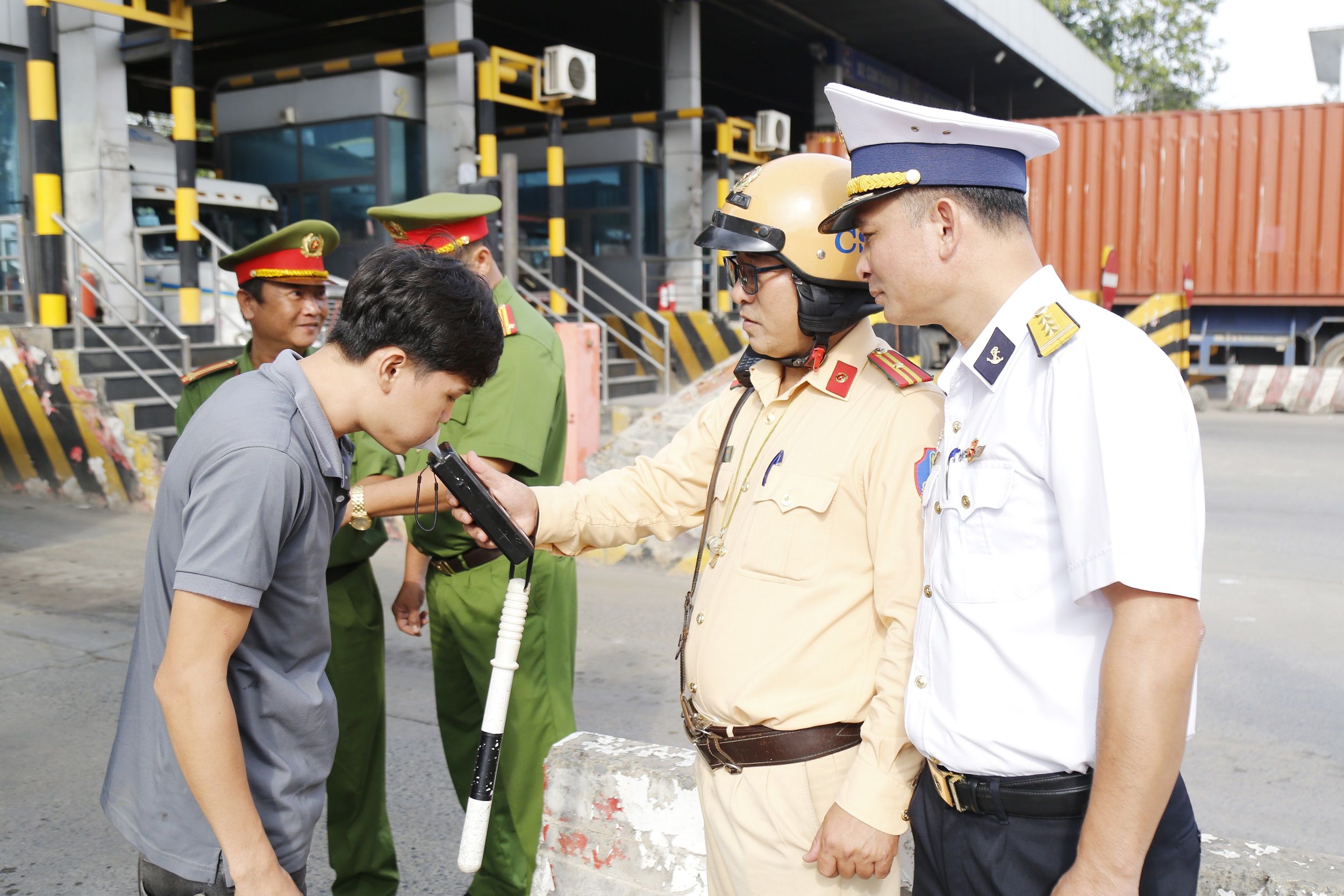 Ngày 31/12, tại TP. Hồ Chí Minh, Tổng công ty Tân cảng Sài Gòn phối hợp với Công an TP. Hồ Chí Minh; Công an TP. Thủ Đức và các lực lượng Biên phòng cửa khẩu, Hải quan cửa khẩu tiến hành kiểm tra hung khí, vật liệu nổ, công cụ hỗ trợ và kiểm tra nồng độ cồn đối với lái xe, phụ xe trên các phương tiện ra, vào cụm cảng Tân cảng Cát Lái.