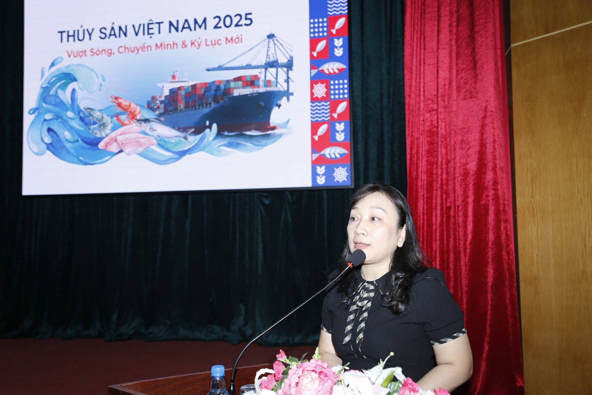 Bà Trần Thị Quế Phương, Phó tổng Thư ký Hiệp Hội Chế biến và Xuất khẩu thủy sản Việt Nam phát biểu