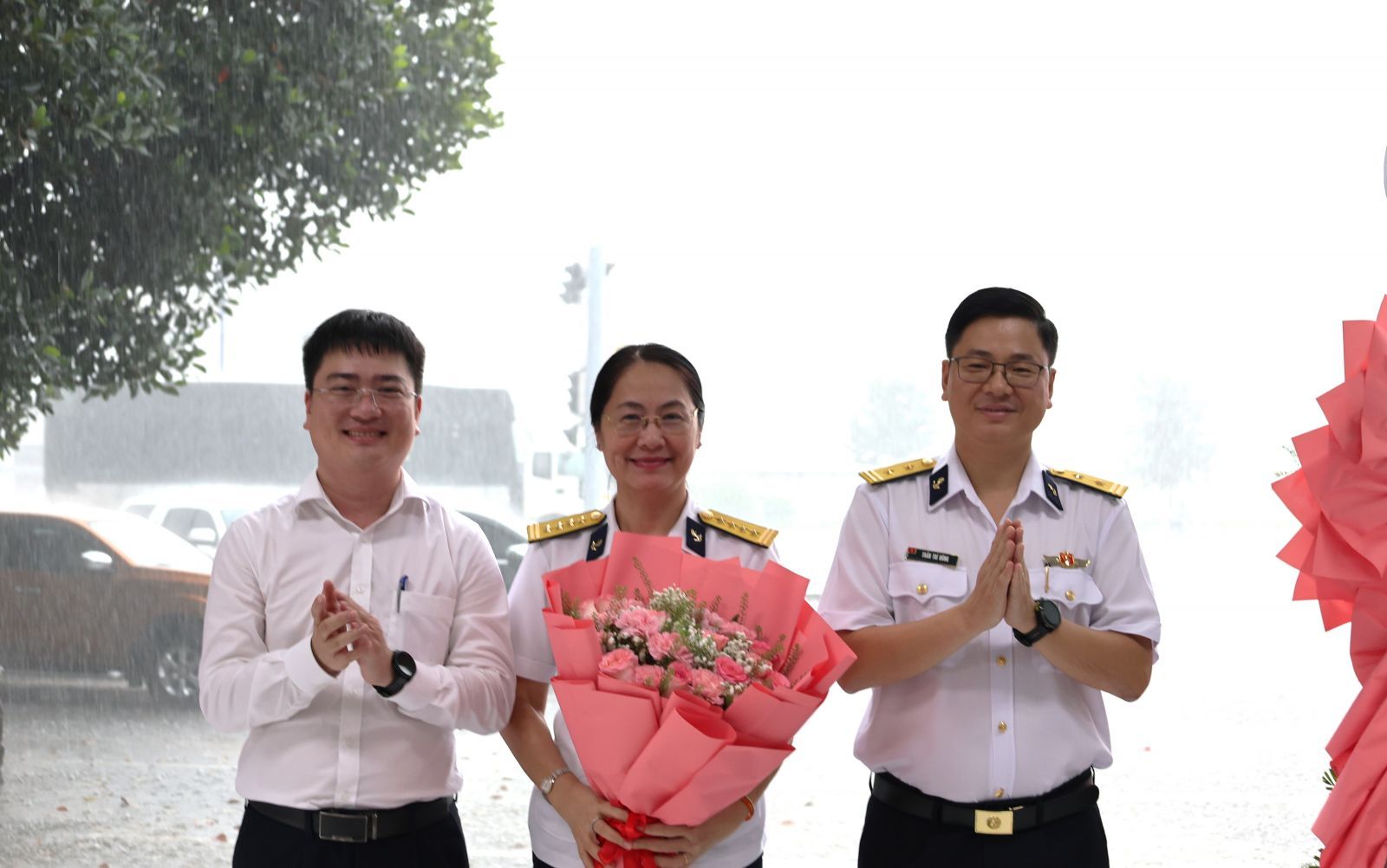 Đại diện lãnh đạo Chi nhánh Bưu chính Viettel Hồ Chí Minh (Viettel Post) và ICD Tân Cảng Sóng Thần trao tặng hoa chúc mừng, thể hiện tinh thần hợp tác, gắn kết và phát triển bền vững giữa hai đơn vị