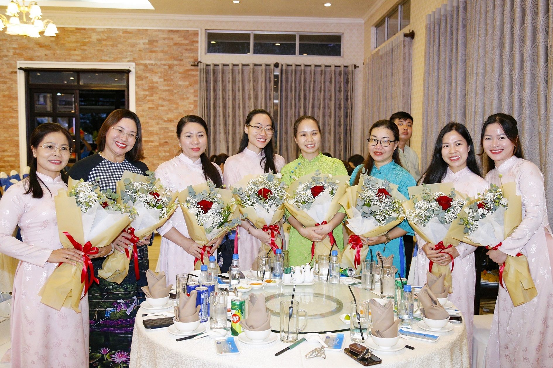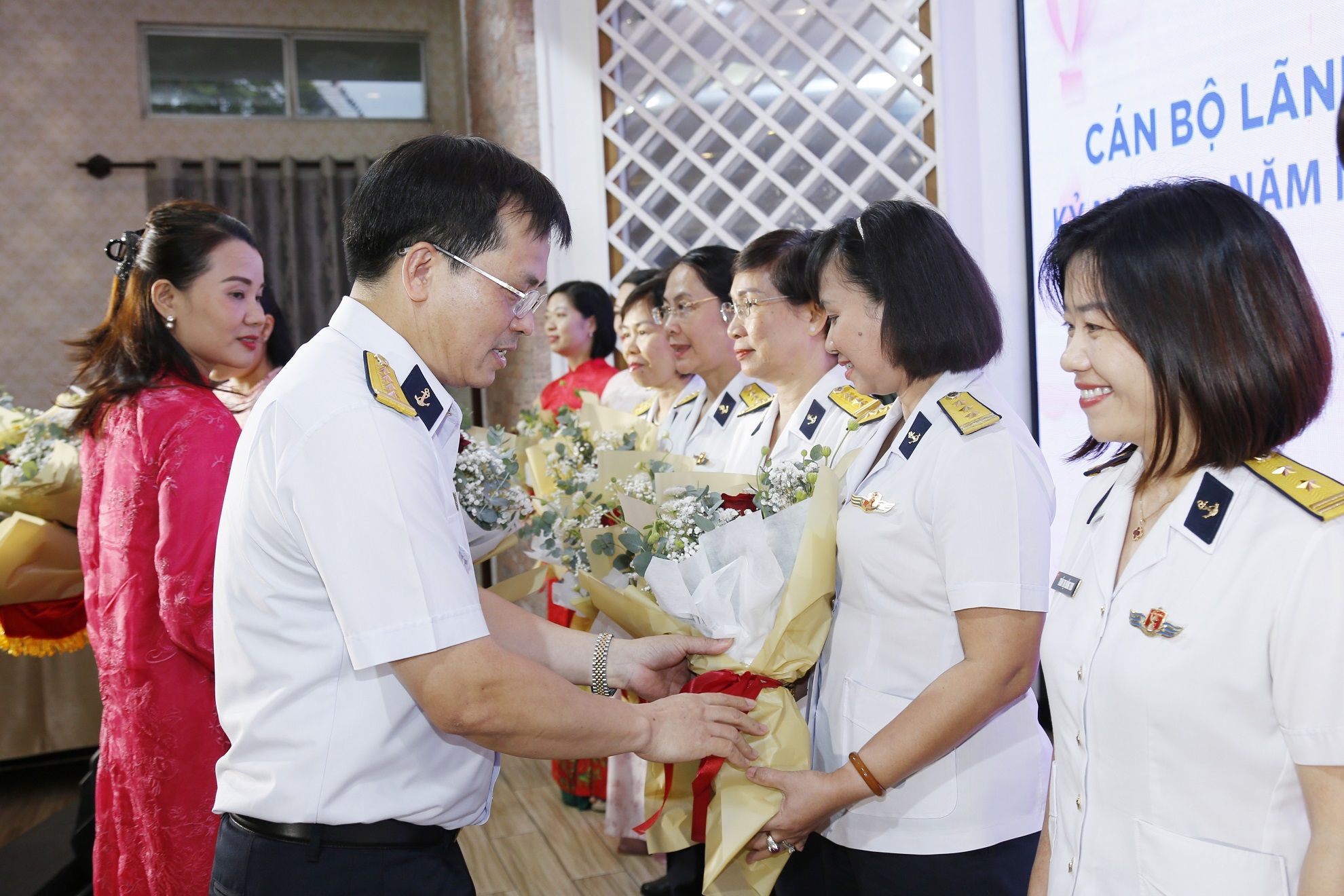 Đại tá Nguyễn Năng Toàn tặng hoa chúc mừng cán bộ lãnh đạo nữ