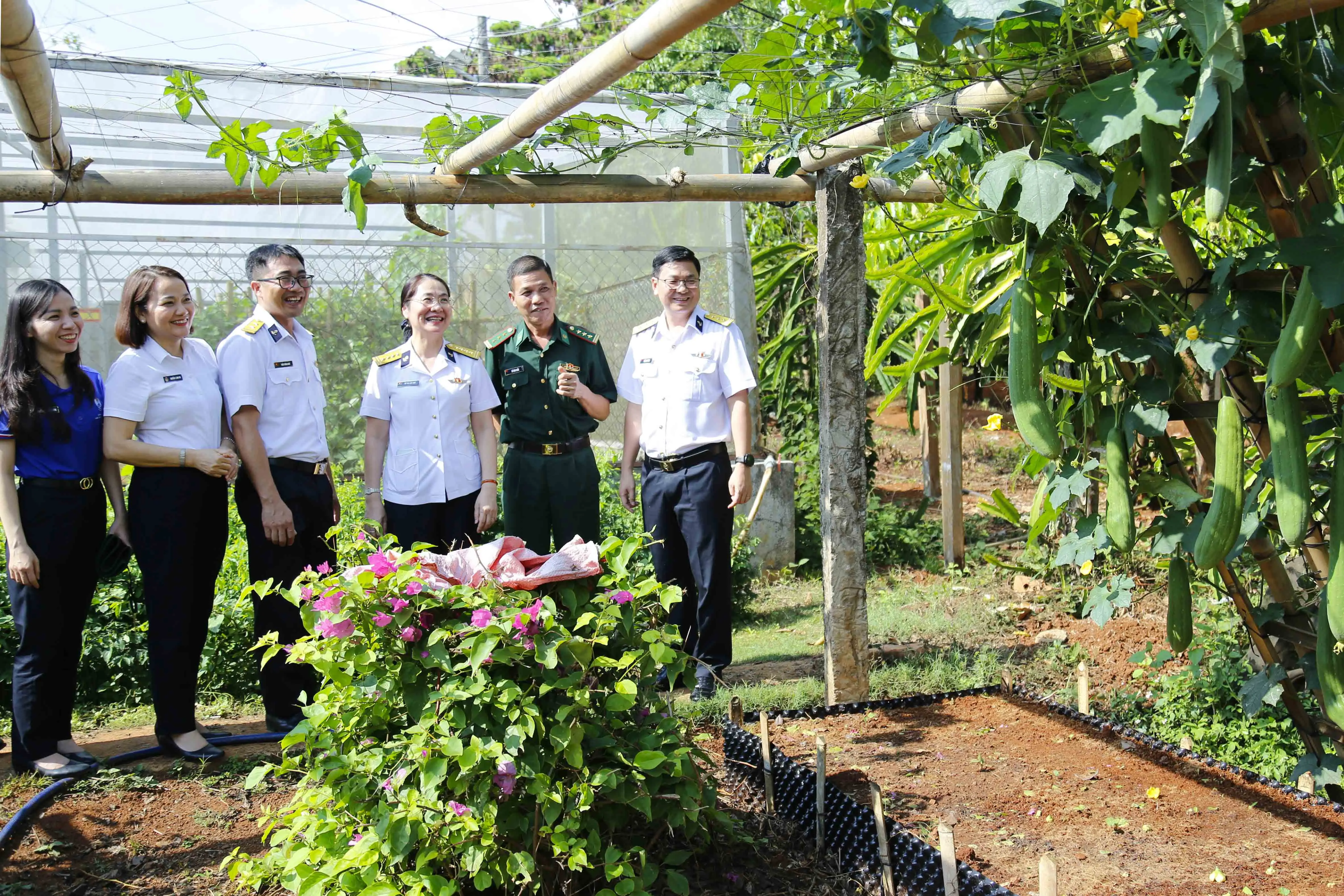 Đoàn công tác tham quan khu tăng gia của Đồn Biên phòng Đăk Ơ