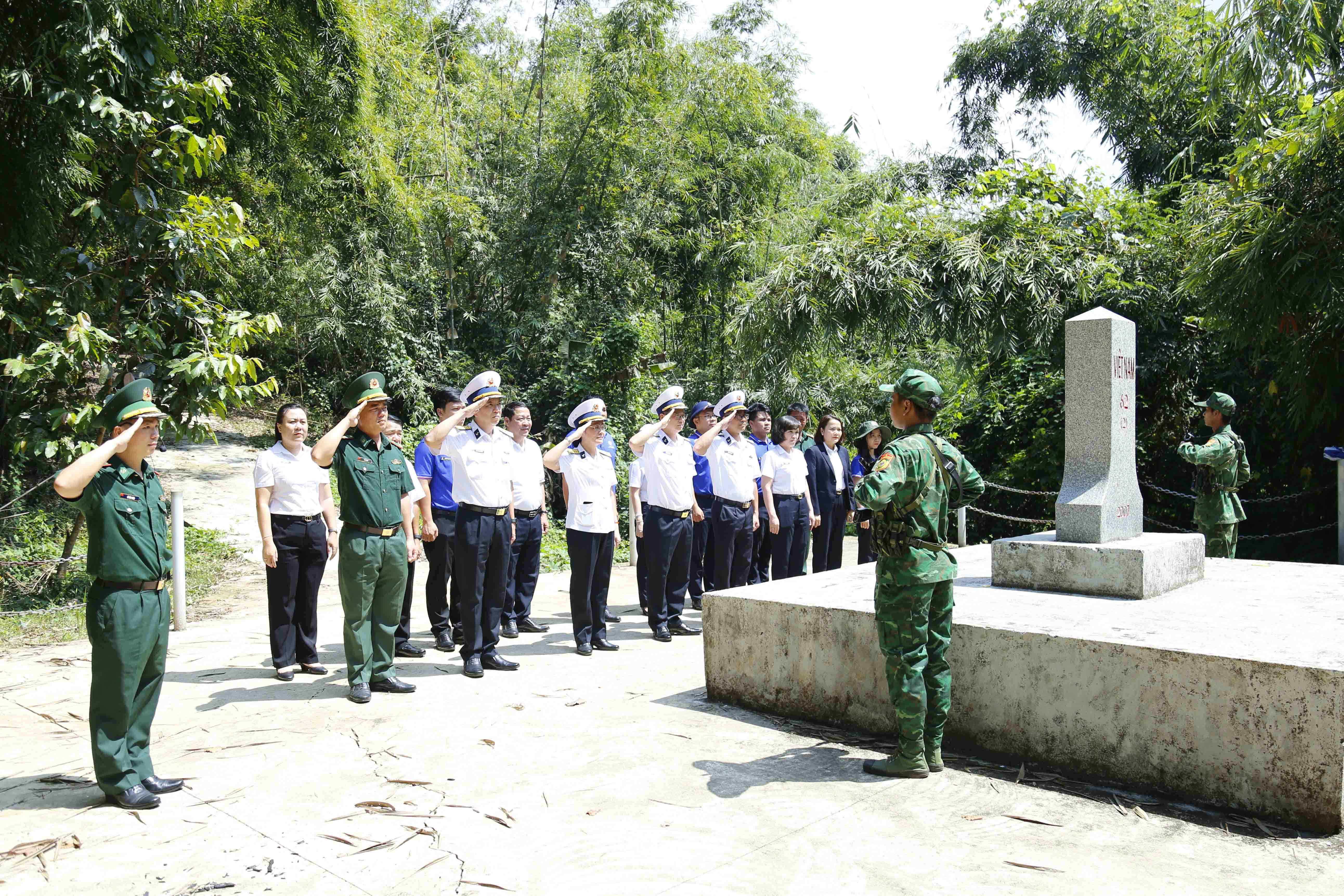 Cán bộ, người lao động ICD Tân Cảng Sóng Thần thực hiện nghi thức chào cờ bên cột mốc biên giới số 62