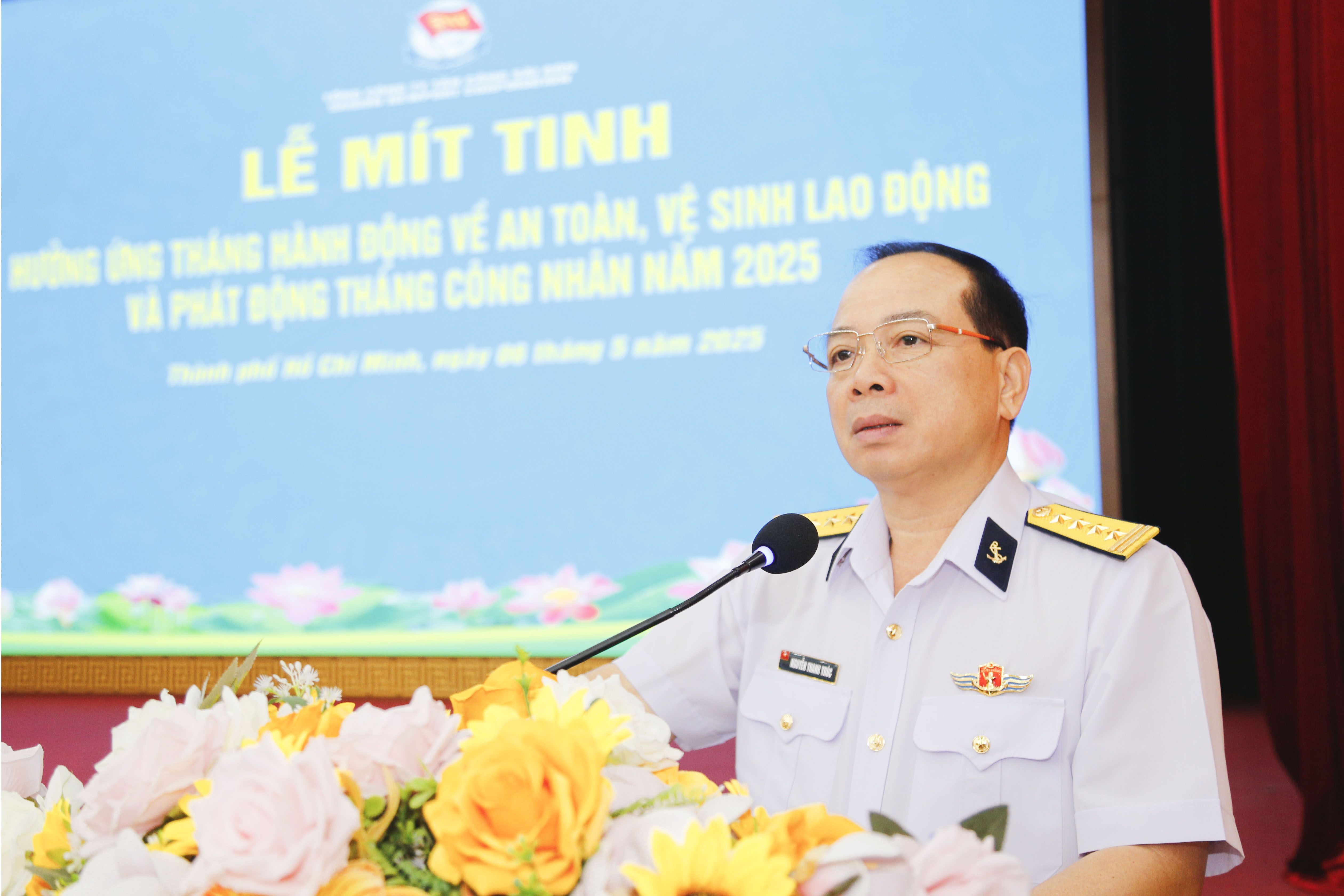 Sáng 6/5, tại TP. Hồ Chí Minh, Tổng Công ty Tân cảng Sài Gòn tổ chức buổi mít-tinh hưởng ứng Tháng Công nhân và Tháng hành động về an toàn, vệ sinh lao động (AT-VSLĐ) năm 2025. Đại tá Nguyễn Thanh Trúc, Phó Tổng Giám đốc dự, chủ trì.