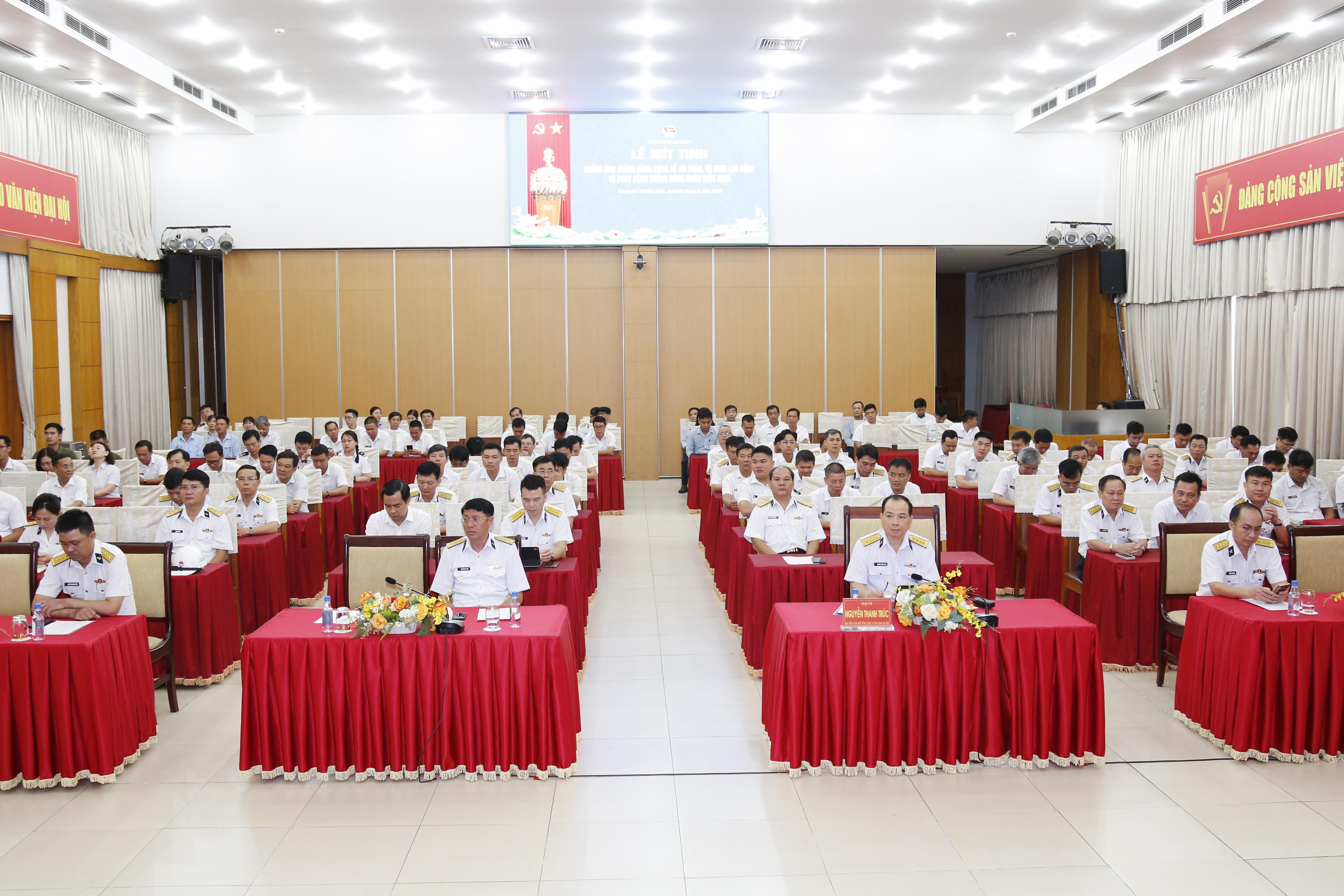 Phát biểu tại buổi mít-tinh, Đại tá Nguyễn Thanh Trúc yêu cầu lãnh đạo, chỉ huy các cấp, tổ chức công đoàn trong trong hệ thống đẩy mạnh công tác tuyên truyền, nâng cao nhận thức và tuân thủ pháp luật về AT-VSLĐ, đẩy nhanh ứng dụng, chuyển đổi số giúp nâng cao chất lượng công tác an toàn, vệ sinh lao động ngày càng hiệu quả. Tổ chức các hoạt động thăm hỏi, tặng quà cho đoàn viên công đoàn, người lao động có hoàn cảnh đặc biệt khó khăn, bị tai nạn lao động, tai nạn giao thông, mắc bệnh hiểm nghèo.