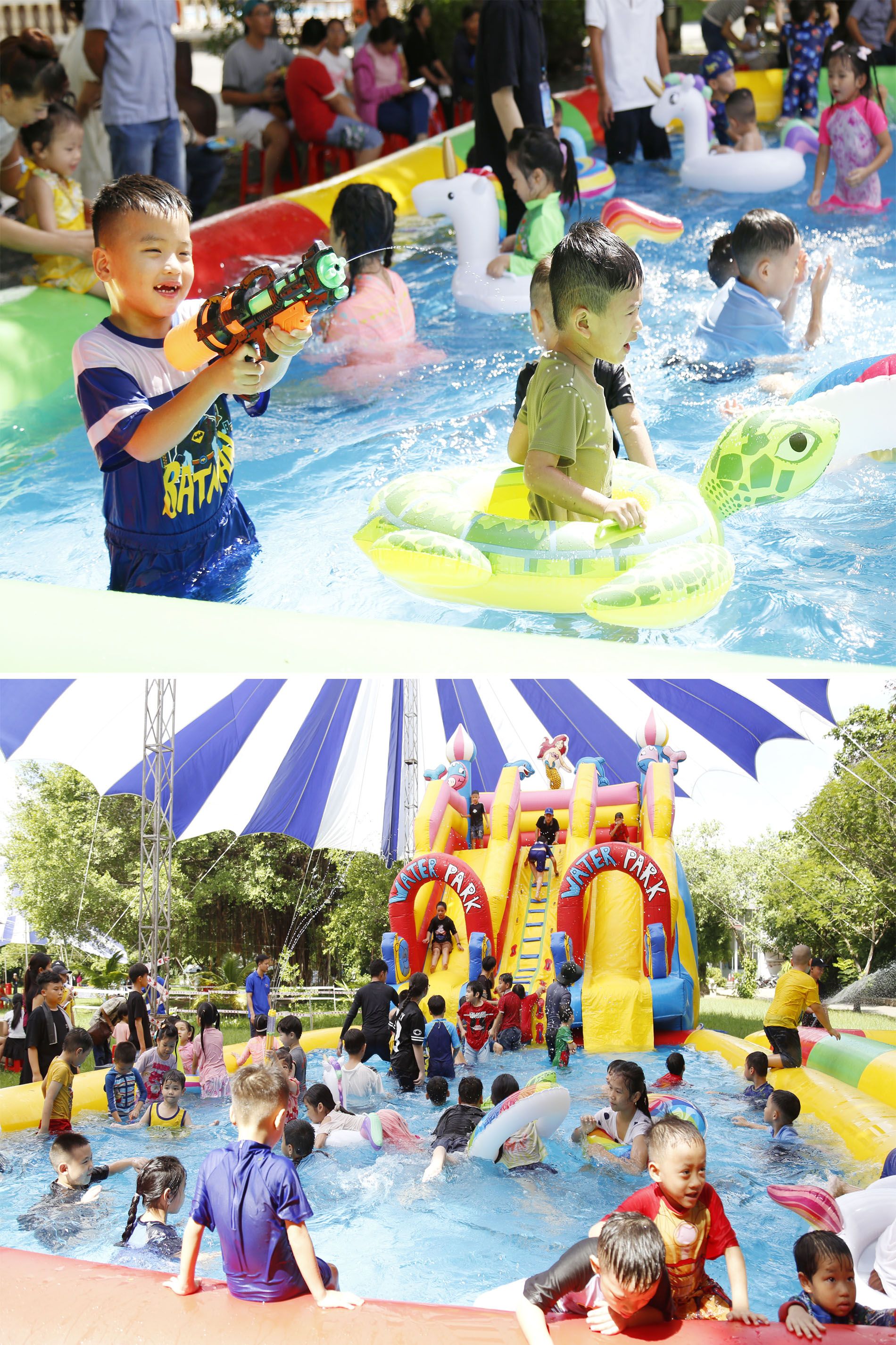 Đông đảo thiếu thi tham gia trải nghiệm bể bơi nhân tạo